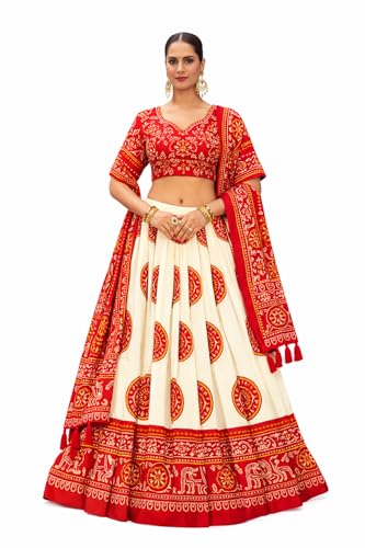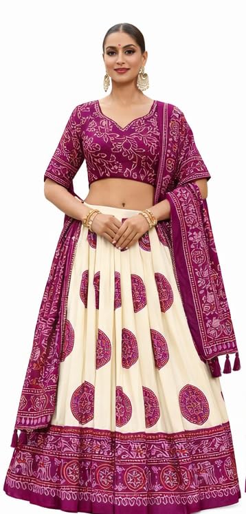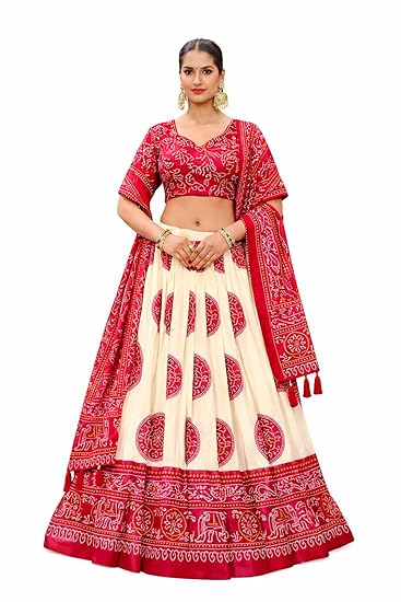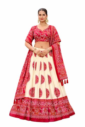 Women Printed Lehenga Choli with Dupatta | Semi-Stitched Blouse Fabric-Silk | Traditional Ethnic Wear