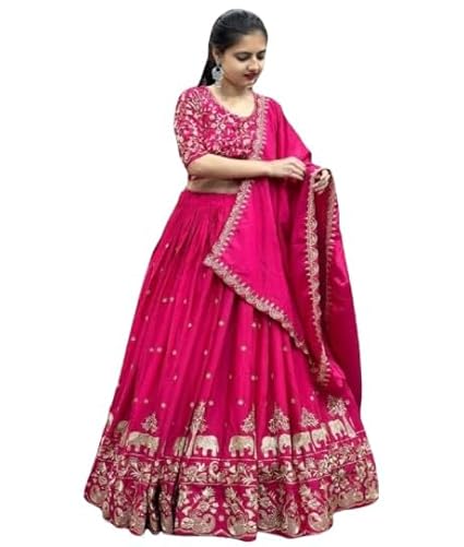 Women’s Embroidered Lehenga Choli Set with Dupatta | Free Size | Unstitched Blouse | Rani Pink